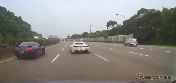 日産 Gt R と フェラーリ 458 高速道路で公道レースか 台湾で事故