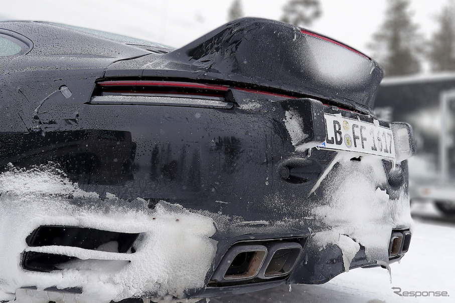 偽装薄の新型ポルシェ911ターボが目撃 テールランプ端 そして中央は